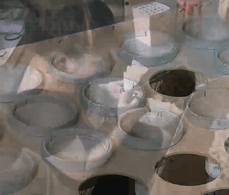 这个机器会给羽毛底部喷一点粘稠的胶水,这样这些毛就固定住了。