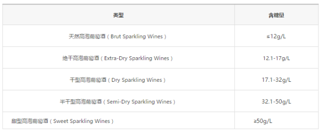 起泡酒据含糖量分类标准图