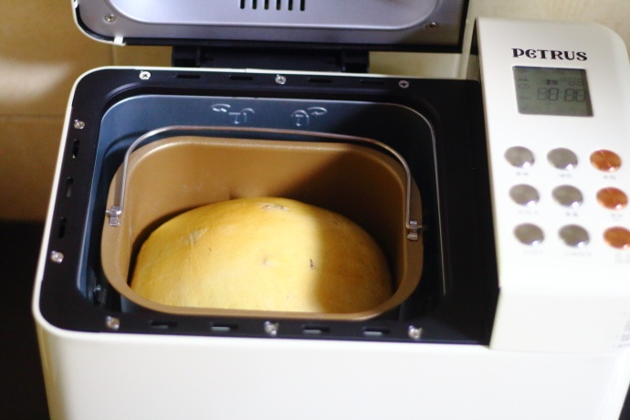 4、面包启动后开始揉面工作。第一个揉面阶段的状态;