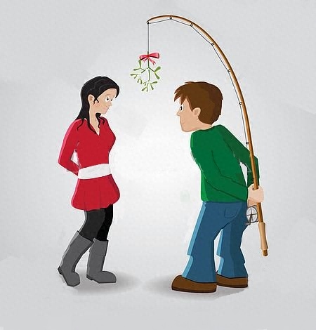 在槲寄生下亲吻,