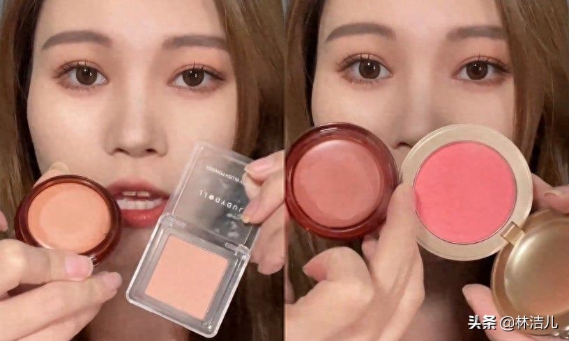 建议大家使用两种不同调性的腮红,一个是饱和度较低,带有一点灰调的修容色;另一款则是打在面部区域的腮红,选择紫色、粉色等提亮色,或是饱和度、饱和度较高的颜色都可以。
