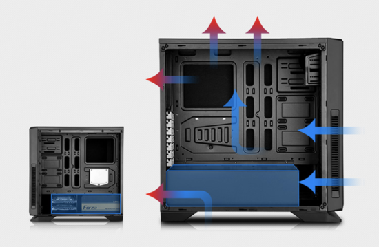 对于偏高端的硬件,更多的就是考虑机箱散热性,散热性较好的机箱,通常会设立多处通风位,包括机箱前置面板、上置面板,后置面板,并且可以安装散热风扇以及水冷冷排,提升机箱内部风道,如果安装风扇,一定要注意风道问题,通常前置面板安装的风扇是进风,而上置面板和后置面板是出风。