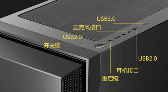 机箱的接口常见的是USB2.0、USB3.0以及音频接口,有些入门机箱不带USB3.0,建议选用带有USB3.0接口,因为如果有USB3.0的U盘或者移动硬盘,速度相对要快上不少,虽然现在的新主板上都有USB3.0接口,但是对于U盘、移动硬盘之类的,每次到主机后面插拔显得十分不方便。