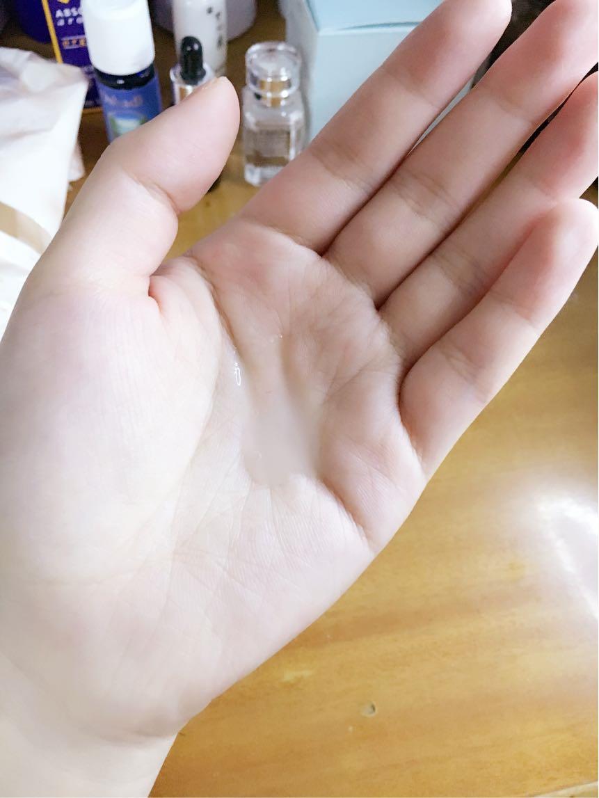 挤两滴精华肌底液滴入手心,清晰可见。