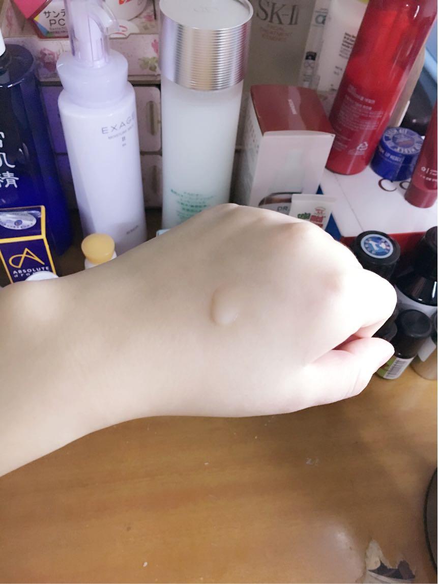 精华肌底液比较浓稠,所以滴在手背上不会大幅度流动。