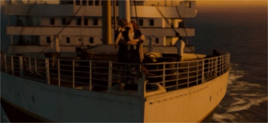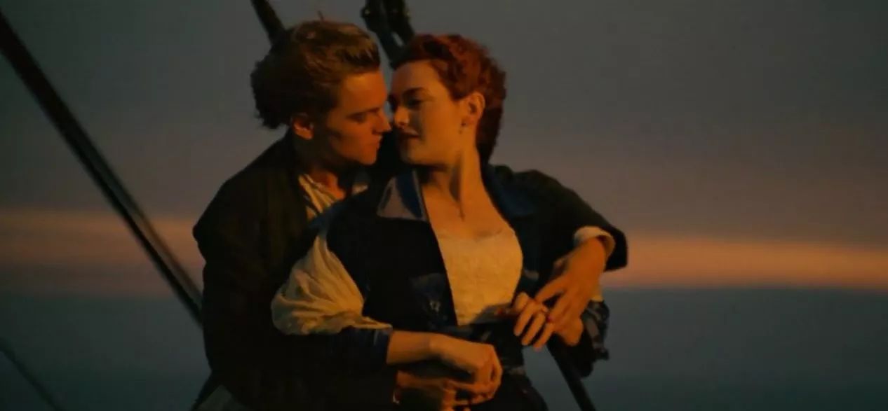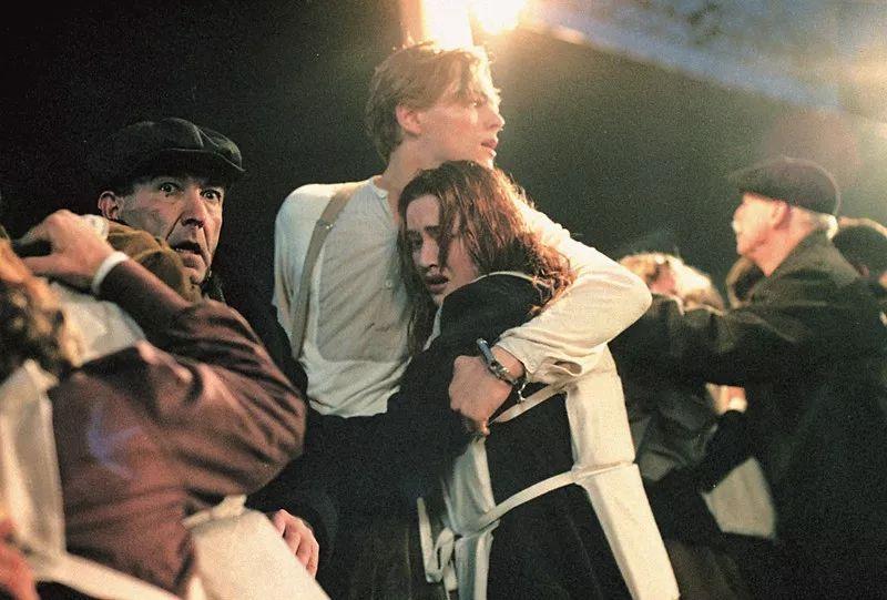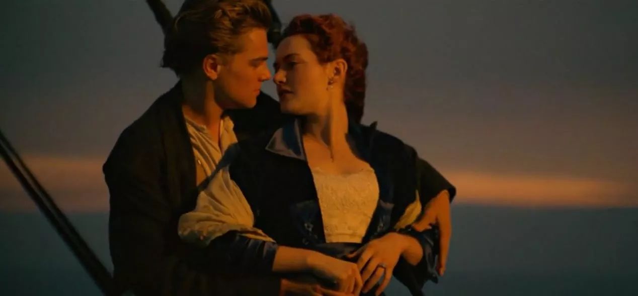 最终,随着船尾与海平面的倾斜度渐成直角,莱昂纳多和温斯莱特也悬在了整场电影海拔最高的地方——船尾的甲板上。