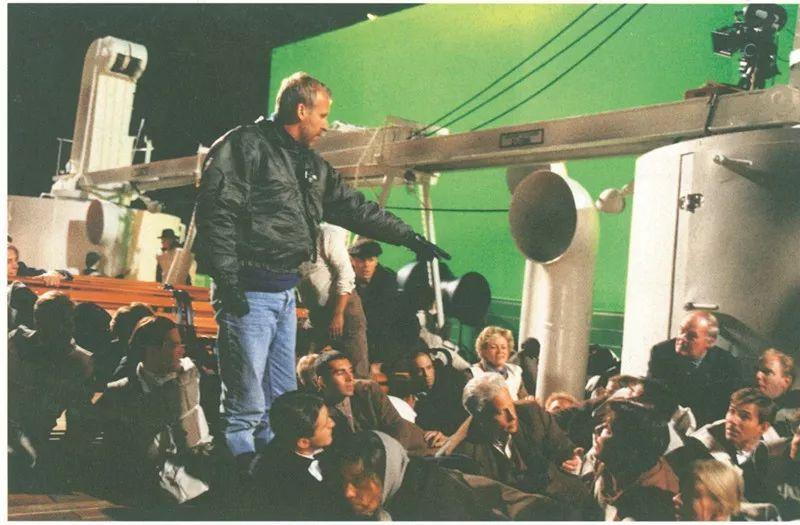 他大发雷霆,骂骂咧咧,站在高台上指挥雇来的两千多名群众演员,不断发出“往下跳!”、“到救生艇去!”、“往船头跑,快点!”的指令。