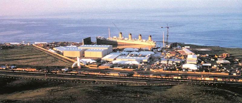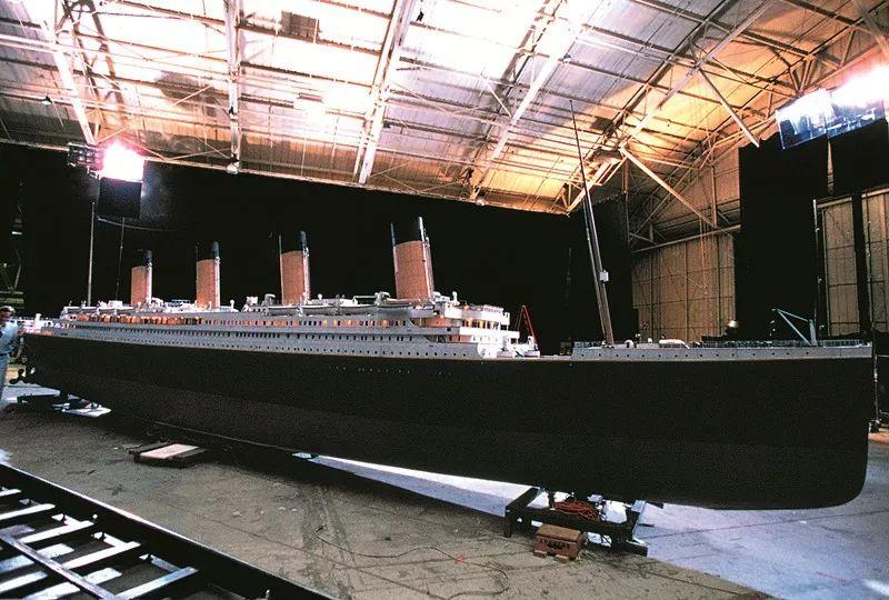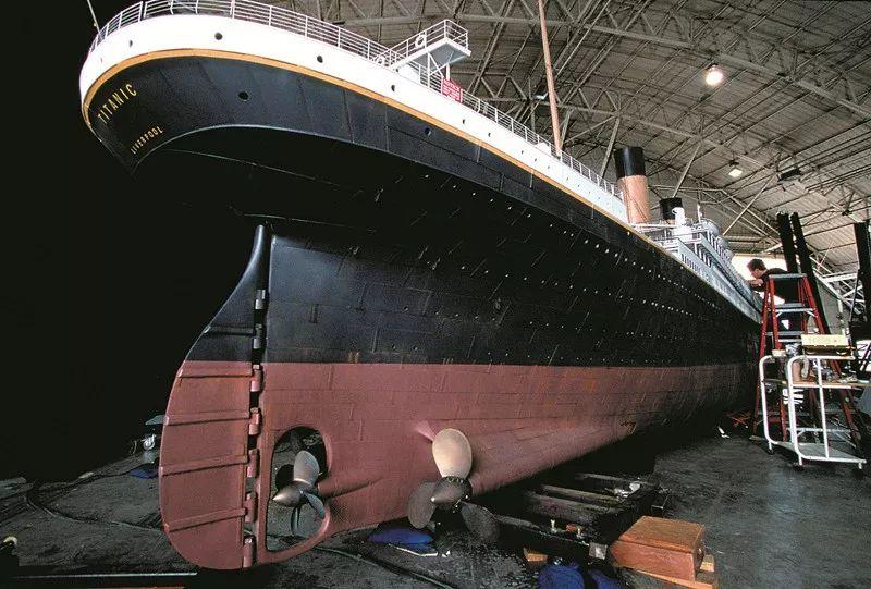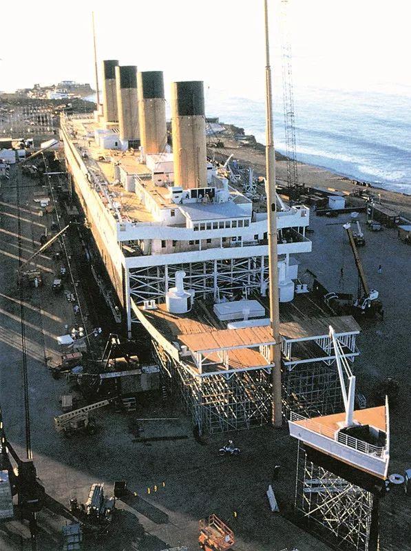 卡梅隆和拉蒙特设计的泰坦尼克号复制品,高10层楼,长236米。该布景采用一比一的比例,只是截去了中段若干重复的部分,将长度缩短了27米,使福克斯买下的这块地能够容纳得下。
