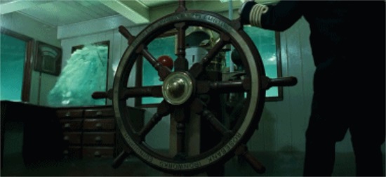 借着“和平一号”的灯光,卡梅隆透过舷窗看到的正是海水漫过栏杆时船上乐队演奏《上帝我向您走近》(Nearer My God to Thee)的那块甲板。
