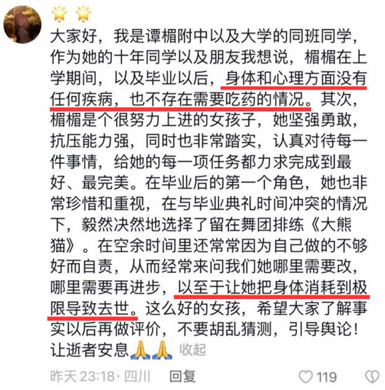 让人遗憾的是,2023年11月23日晚,身体一向健康的谭楣,突然离开了人世,终年仅21岁。