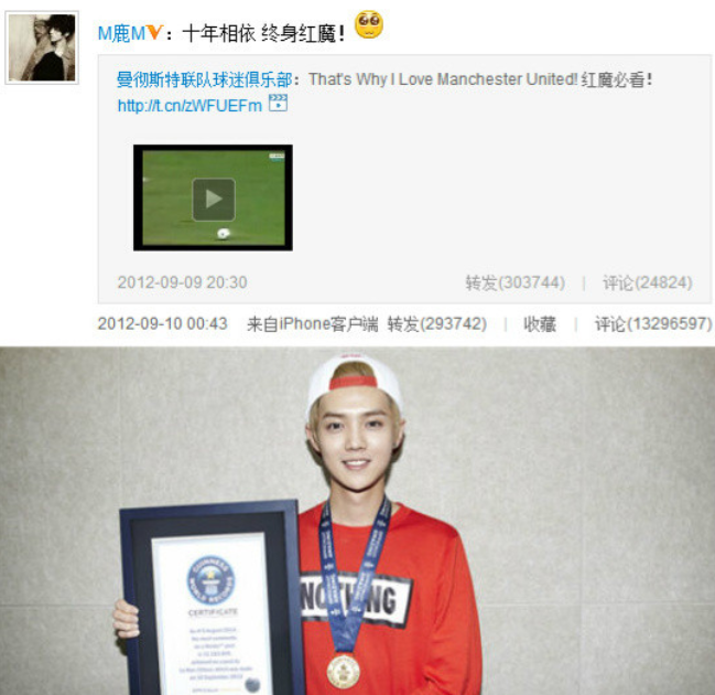 虽然有点中二,但是在当时环境下,EXO确实是一骑绝尘,而鹿晗的粉丝量又是EXO中最高的,这对年少成名的他来说无疑是最高的荣耀。