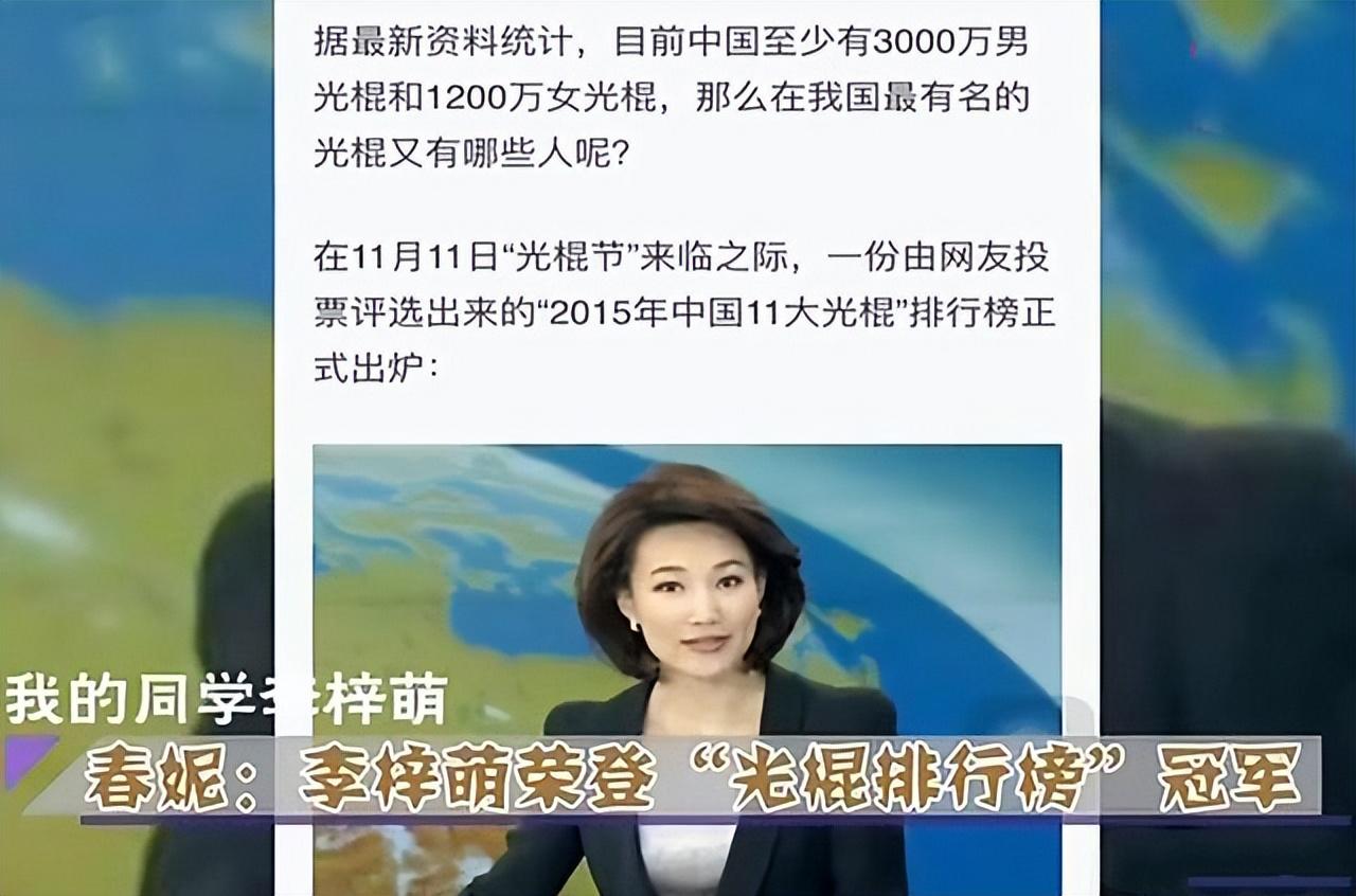 征婚失败也就算了,有一年李梓萌还入选了光棍榜的年度冠军。