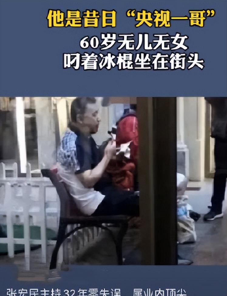 有人偷偷拍下了这个画面,还上传到了网络上,并配文:他是昔日“央视一哥”,60岁无儿无女,叼着冰棍坐在街头。