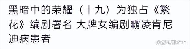 这些文章标题起得都非常隐晦,多篇以 " 黑暗的荣耀 " 为基底,起底了幕后的霸凌行为,少数几篇直言被抢剧本。在一篇 " 为独占《繁花》编剧署名,大牌女编剧霸凌肯尼迪病患者 " 的文章中,作者表示都是根据真实事件撰写,讲述遭遇霸凌 PUA 后病情恶化导致言语能力行走能力退化,以及剧本如何被明星女编剧抢走的始末。