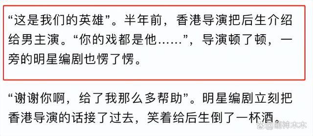 作者称张艺谋的徒弟在剧组挑唆美术组与王家卫的关系,还挑唆选角部门与王家卫的关系。而在自己的导演专业上,张艺谋徒弟并没有表现出足够水平,被质疑后,把问题推给下边人,绕来绕去又是人情关系没得推脱,还私自扣掉演员部分经费。