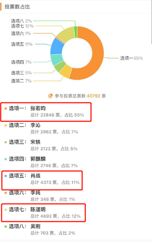 大家对新一季的演员也都十分关注,有媒体进行了网络投票,让观众投出“最期待回归的演员”,大部分观众都希望原班人马能够回归拍摄,其中除了张若昀之外,陈道明、肖战意外呼声很高,分别占比12%和11%。