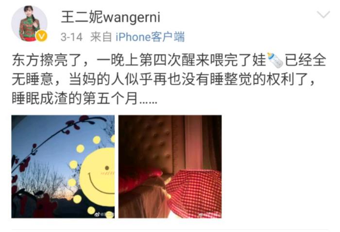 当了妈妈的王二妮专心照顾着孩子,当妈妈是一件非常辛苦的事情,不久前她还发文抱怨到:"当妈的人似乎再也没有睡觉的权利了,睡眠成渣的第五个月......"