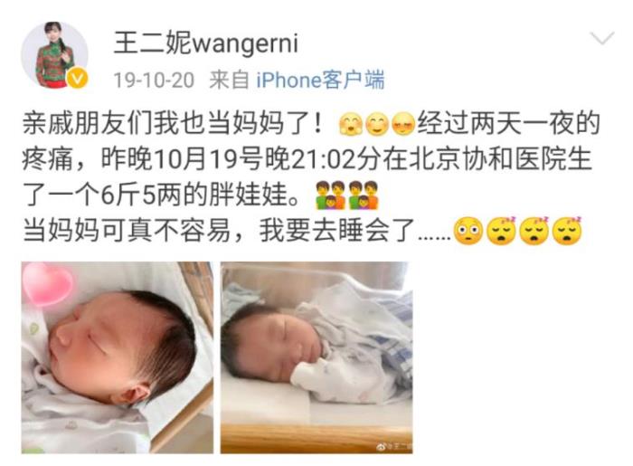 同年,王二妮还生了一个儿子,因为母爱使王二妮不得不放弃她的事业,更多的关注于孩子的成长和养育。孩子出生后,王二妮还在社交平台发文表示:"生了一个6斤5两的胖娃娃,当妈妈可真不容易,我要去睡会了......"