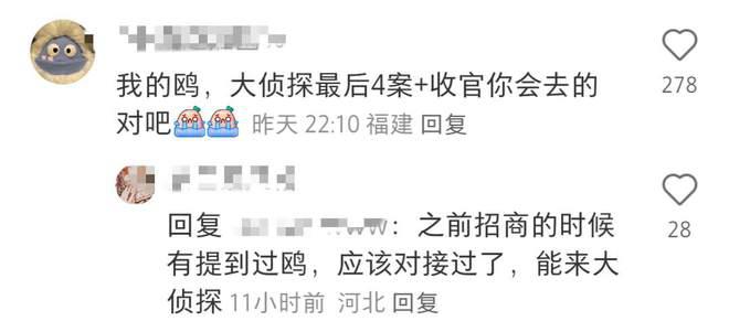 王鸥近大半年工作量骤降,尤其是缺席了最新一季的《大侦探》录制,也让不少节目粉丝挂心。看到王鸥疑似复工的消息,不少粉丝在评论区期待她参与录制收官节目。还有粉丝称,《大侦探》招商的时候有提到过王鸥,可能双方已经对接过了。再加上剩下的节目 3 月份才录,王鸥有时间。从粉丝的期待度来看,复出并不难。