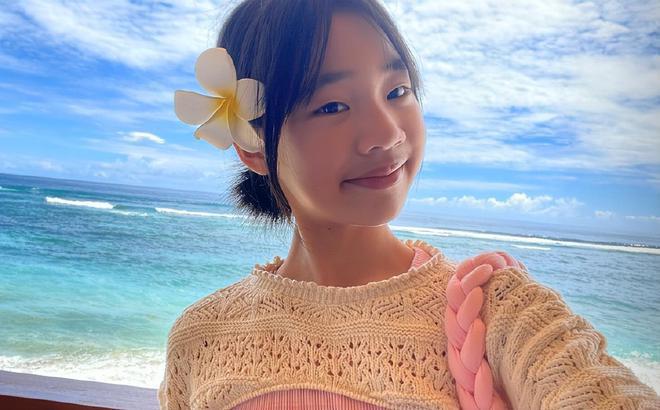 别看许老三长相平平,可 12 岁的她如今也变得相当开放。当天她穿着粉拼白色的裙子,头戴着百合花在海滩旁拍照。还被网友拍到直接穿着比基尼在沙滩上玩耍,开放程度不输两位姐姐。