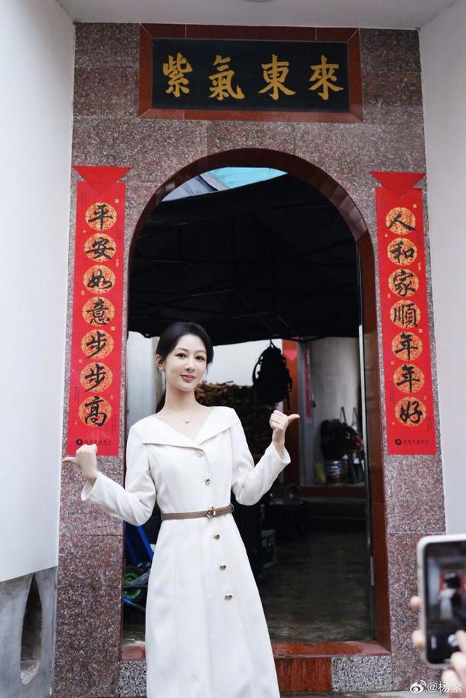 杨紫也晒出了自己的多张美照,画面中的她也穿着一袭白色的连衣裙,V 字形的造型也将她那修长的天鹅颈和雪白的肌肤完美的展示出来,一条腰带更是把她那曼妙的身姿更加细致的勾勒出来。她双手竖着大拇指,在一处复古的大门前凹造型,脸上也露出了甜甜的笑容,俨然成为了一道靓丽地风景线了。