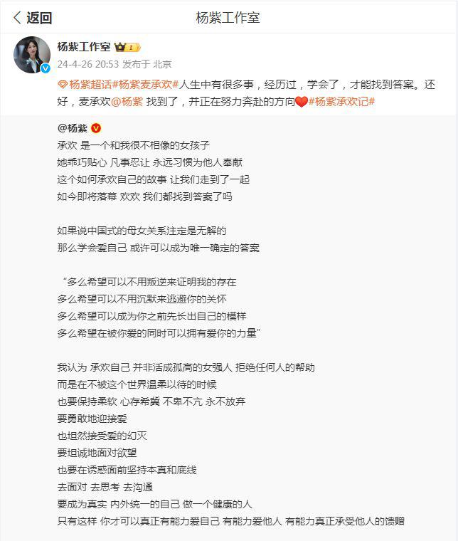 杨紫晒照告别《承欢记》,甜美灵动如初恋,言语诚恳获赞赏