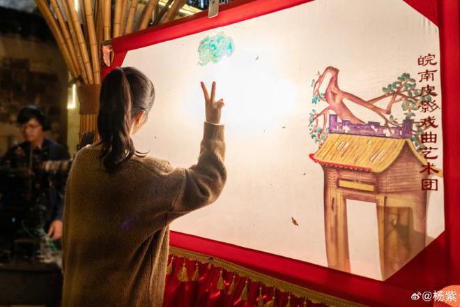 杨紫还在一张皮影布前面凹造型,扎着高马尾的她也特别的可爱,只是不知道在皮影布后面的人儿,看到她会是一番怎样的模样呢?