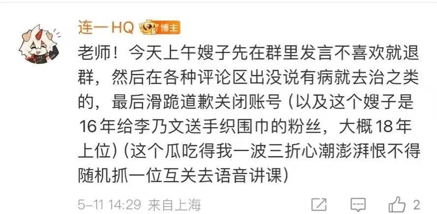 上一个跟经纪人暧昧不清的艺人是张丹峰,洪欣也是软柿子,默许了。李乃文现任老婆的操作更是迷,改微博 ID 亲自在粉丝群教训粉丝,而这个现任大嫂更是被粉丝扒出,她其实是粉丝上位,当时还亲手织围巾送给李乃文。