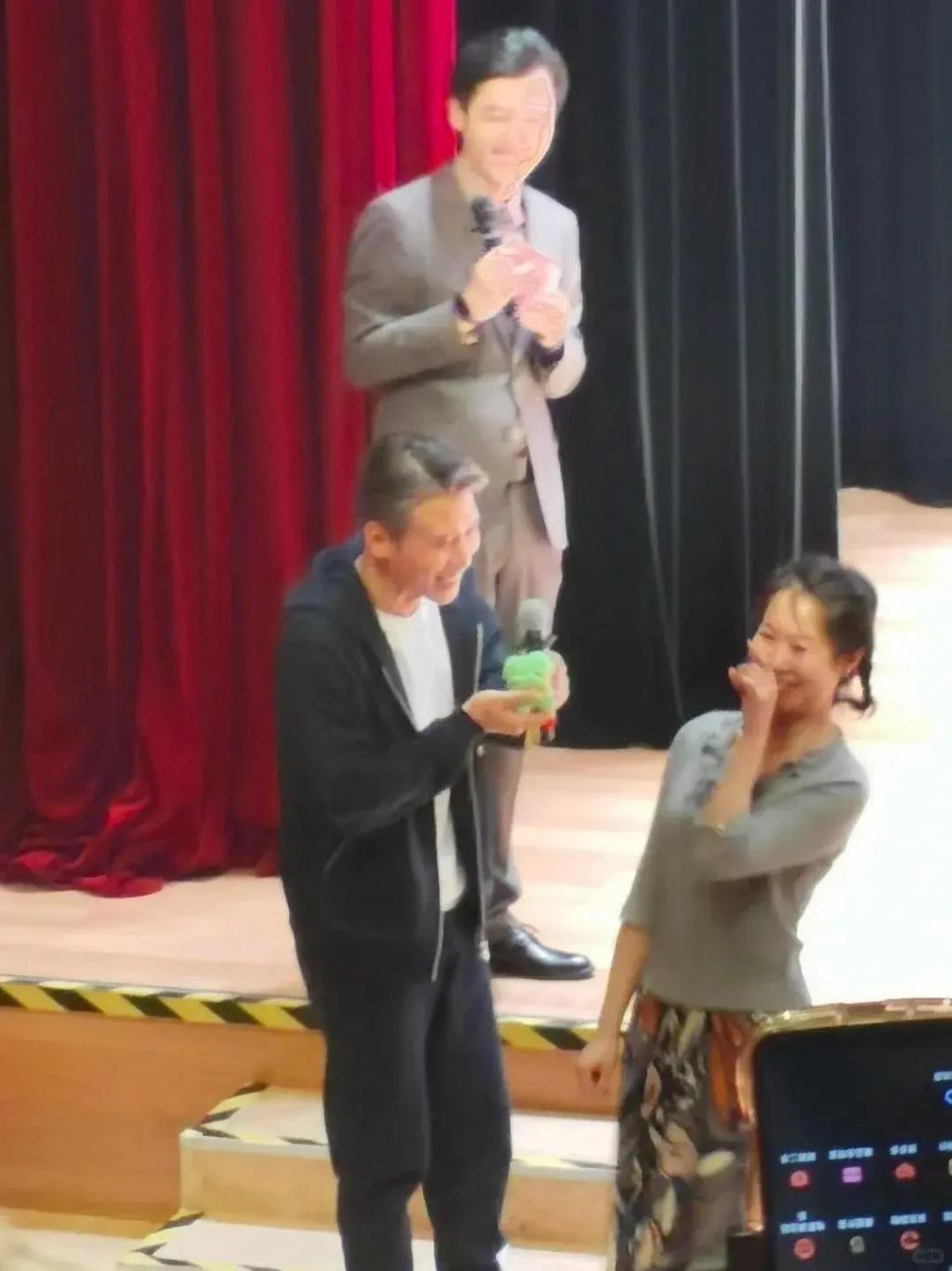 很多粉丝都是冲着李乃文买票的,演出前后想要跟李乃文互动,握手、合影留念、赠送礼物,这些都是粉丝常规操作。