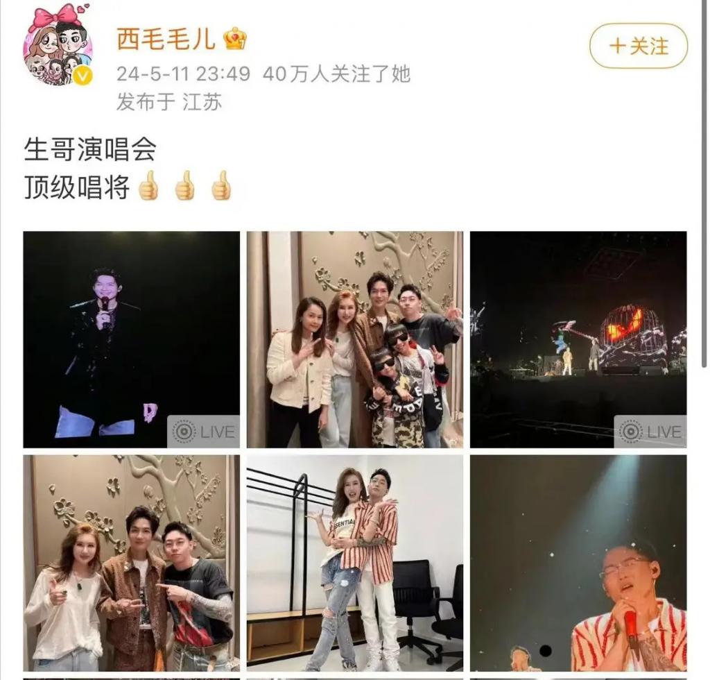 然而,5 月 11 日晚,说唱歌手弹壳(Danko)担任陈楚生演唱会嘉宾,他与老婆西子在后台与陈楚生一家合影,意外曝光云姐的高清正面照。