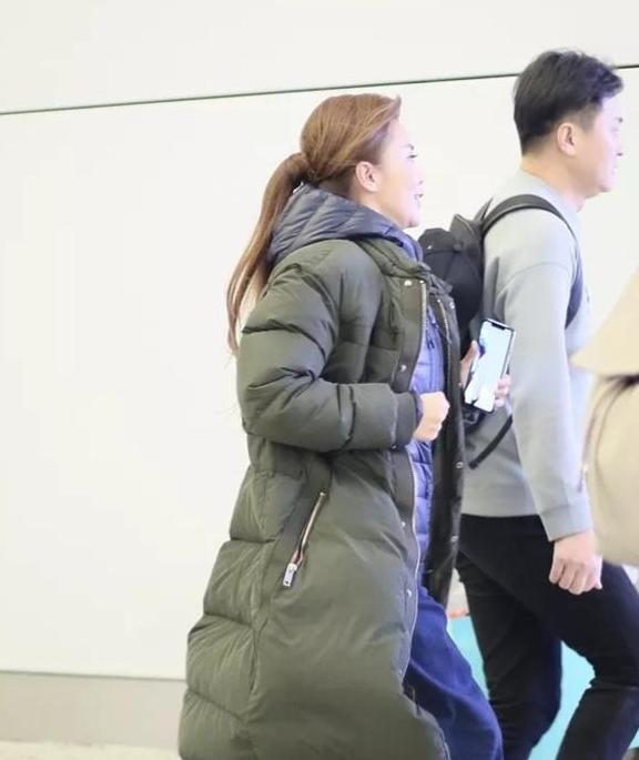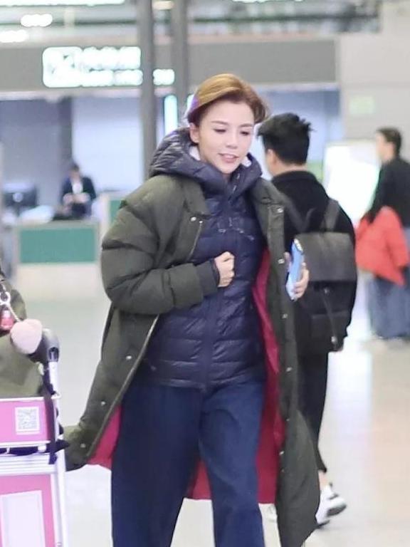 墨绿色的羽绒服宽大的版型可以很好的修饰身材,看上去运动风满满的而黑色羽绒服贴身的款式也不会在视觉上把人拉宽,和墨绿色系的单品搭配在一起,看上去也格外的合适。可以说朱迅的穿搭还是非常接地气的。凌晨风尘仆仆赶飞机录节目也是非常辛苦。