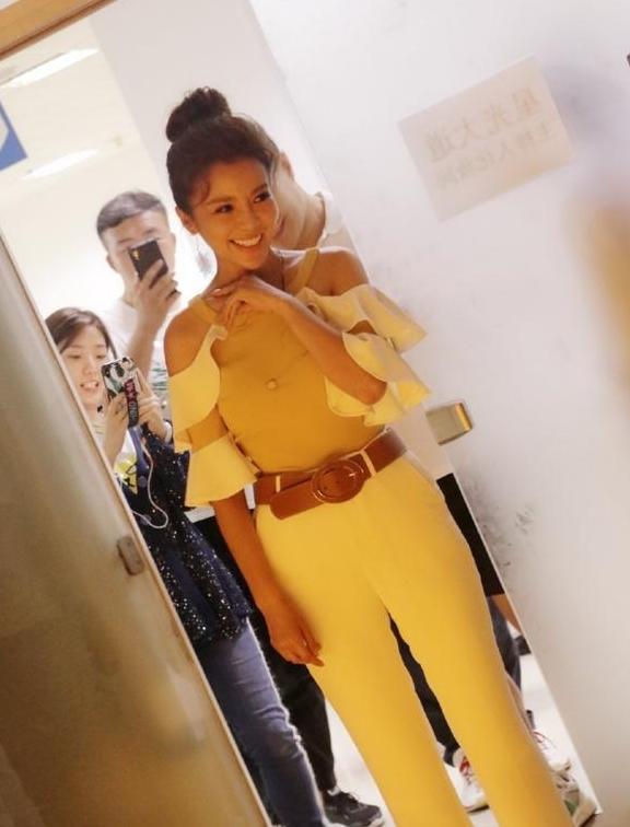 这一套少女感满满的look让朱迅整个人,看上去显得青春又有活力,上面的衬衫综合了很多甜美的元素,无论是手臂上的荷叶边袖还是黄色的配色,都可以在一定程度上让她显得更为的可爱俏皮,再搭配上一条贴身度非常好的微喇裤,显得她的腿又长又直,这就是高腰裤的魅力吧,瞬间拉伸人的双腿比例,即刻拥有超模身材!