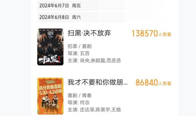 主旋律的《扫黑 · 决不放弃》从名字来看,颇有几分港影的风采,不知是否是看见了港影在 24 年的 " 持续性发力 ",想要借一借港影的 " 东风 "。