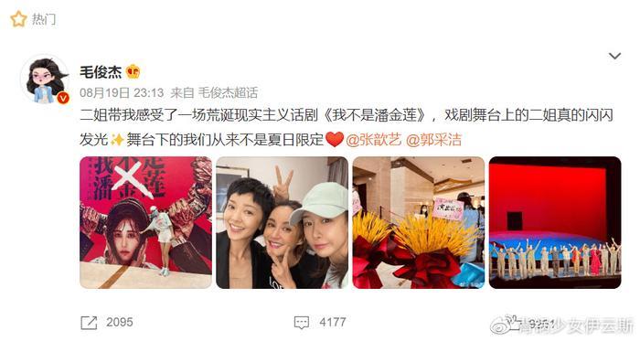 正式开演之后,郭采洁、黄奕、毛俊杰、齐溪等人还买票去现场观看支持↓