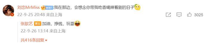 随后刘恋也在评论区里回复张歆艺,表示自己会想念张歆艺带自己吃香喝辣看剧的日子,张歆艺则安慰她加油挣钱玩耍↓