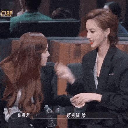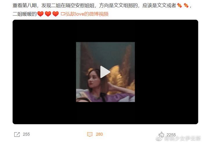 比如浪姐节目时,在镜头没有拍到的背后,张歆艺在隔空安慰某位姐姐↓