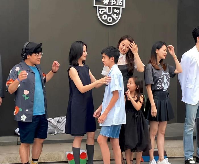 潘粤明合影组是董洁带着孩子们参加的活动。母子俩在现场合影留念。照片中,董洁身穿黑色无袖连衣裙,对着镜头微笑。她应该和儿子一起参加这次活动,所以她很高兴。她的气质不同,充满了幸福。