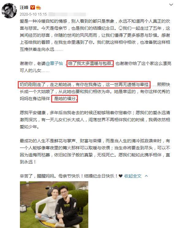 汪峰也曾发文,感谢了妻子章子怡给他的温暖和包容,并表示爱是冷暖自知的情感,感谢生命里遇到了她。
