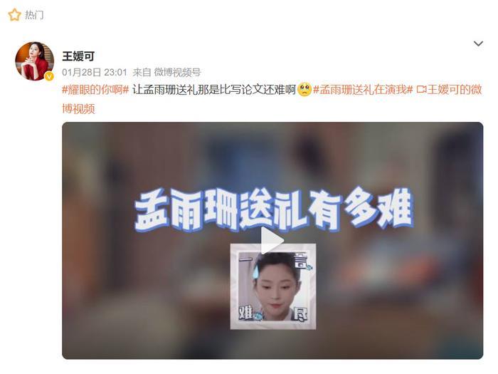 就连王媛可本人也在社交平台上感叹让孟雨珊送礼那是比写论文还难↓