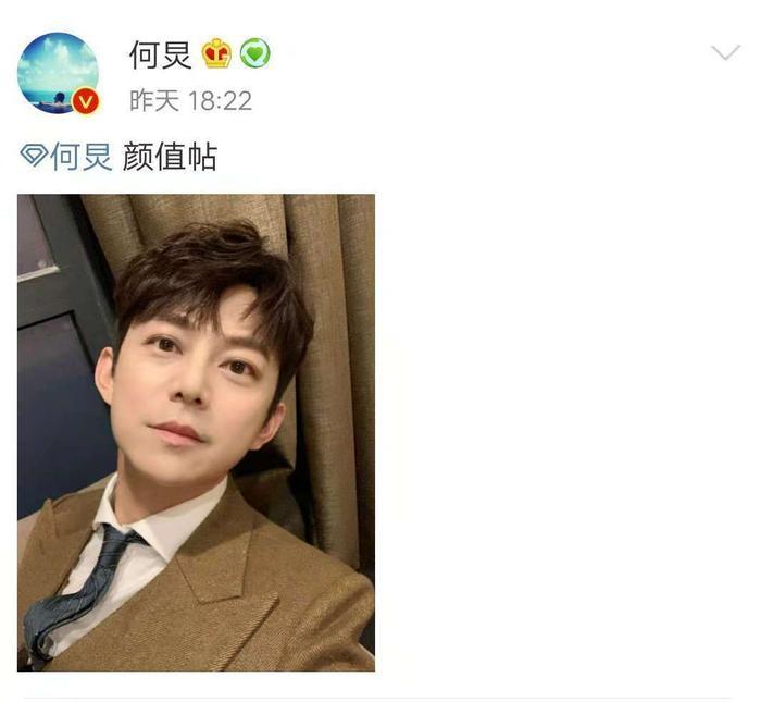 昨天何炅微博话题晒出一张自拍照并配文“颜值帖”,可见何炅对自己的颜值也是相当自信的。
