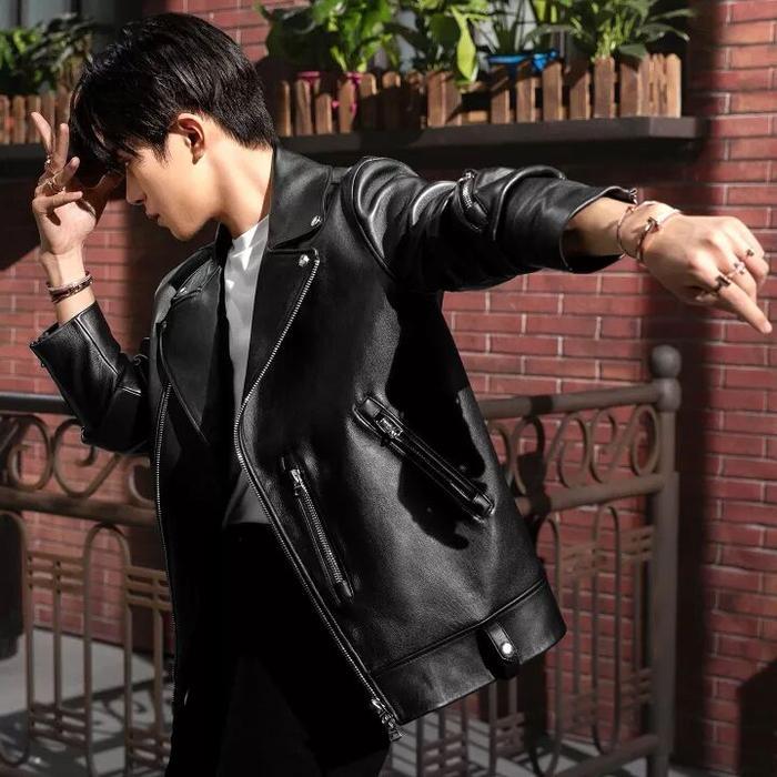 换上皮衣的造型显得更日常一些,首饰的存在为整体造型增添了不少亮点。头发看似没有精心梳理,实则花了很大心思,显得格外朝气蓬勃。精修图中的易烊千玺妆发和造型毫无槽点。皮肤有清晰的纹路,看上去有略微的瑕疵,但更显高级。