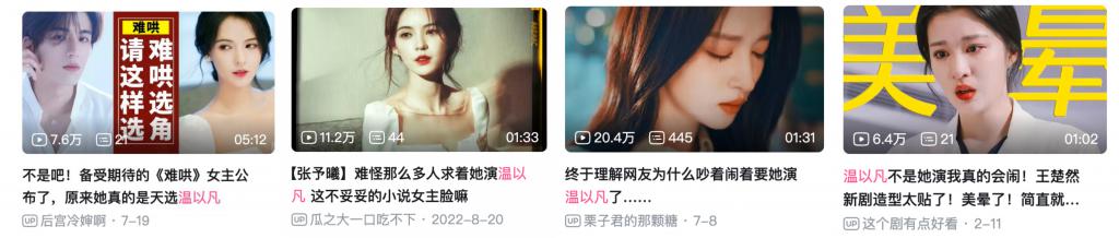 从去年开始,B 站上就涌现了大批以王楚然、张予曦为《难哄》女主角温以凡的二创视频,此后《难哄》剧方也的确接触过二人。毒眸(id:DomoreDumou)此前了解,甚至有些明星团队会提前接洽创作者,进行对应 IP 剪辑,以提升选角的成功概率。