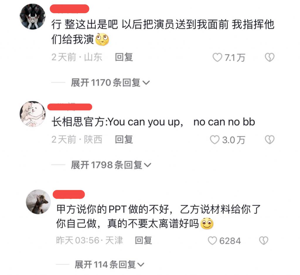 与此同时,有些分界线的模糊,也会让人不知所措,比如这次,《长相思》片方将源文件全部放出,让用户自行剪辑。这种行为或许有可以理解的出发点,但也很难熄灭用户端产生 " 偏离轨道 "、甚至 " 摆烂 " 的质疑。