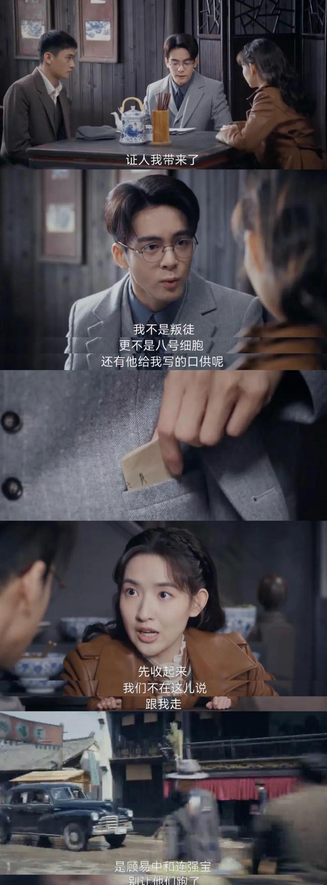 顾易中找到了当时伪装成新四军救他的证人连强宝,并让他留下字据。有了人证物证,顾易中试图和组织建立联系,他借助海沫(陈都灵 饰)与肖若彤(王玉雯 饰)约定好见面地点,然而这却被 " 隔墙耳 " ——代号 " 泉水 " 的翁太得知,并把消息用一盒糕点 " 投喂 " 给了周知非。