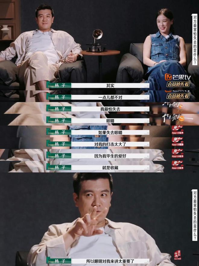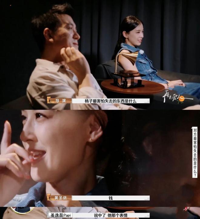 导演又问杨子最喜欢的花是什么?结果黄圣依的回答又跟钱有关,说杨子喜欢 " 有钱花 "。导演问黄圣依最害怕失去什么东西,杨子的回答是美貌。杨子还不知道黄圣依的爱好是什么,甚至问黄圣依 " 你有爱好吗 "。两人结婚 17 年,双方居然根本不了解对方。