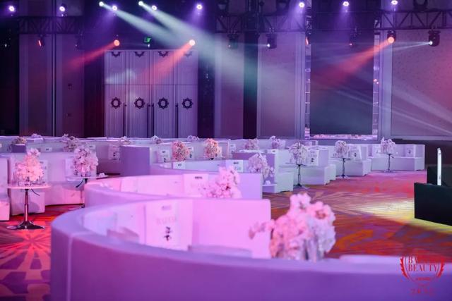 进入主会场后是一场视觉享受,由曲线元素构建出纵深美感,通道装置与地台贴合发光灯带兼备浪漫与高级格调。