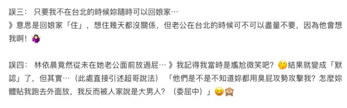 事实上是林依晨也会用臭屁攻击老公,有时候也会体贴跑去外面放,这也算不上什么卑微。