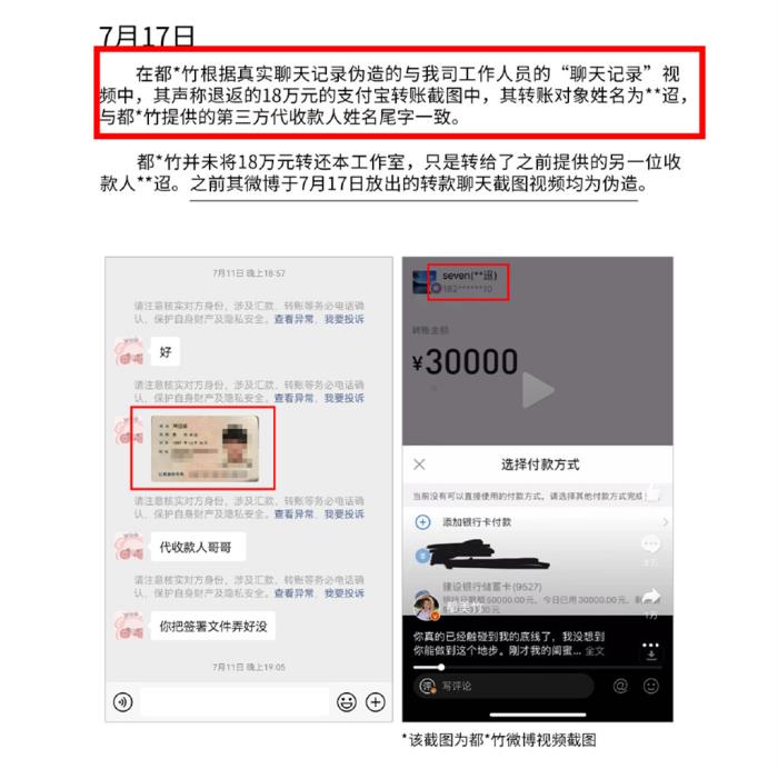 但吴方律师只认都美竹的银行账号,