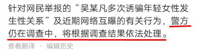 “继续等吴亦凡被曝诱骗女生发生性行为的调查结果。”