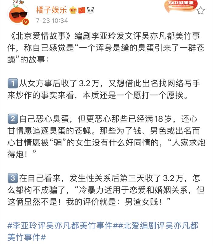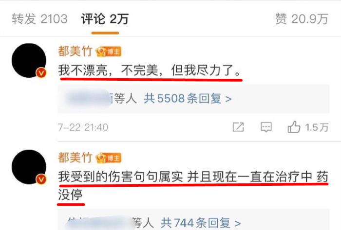 都美竹昨晚就针对质疑发了文:
